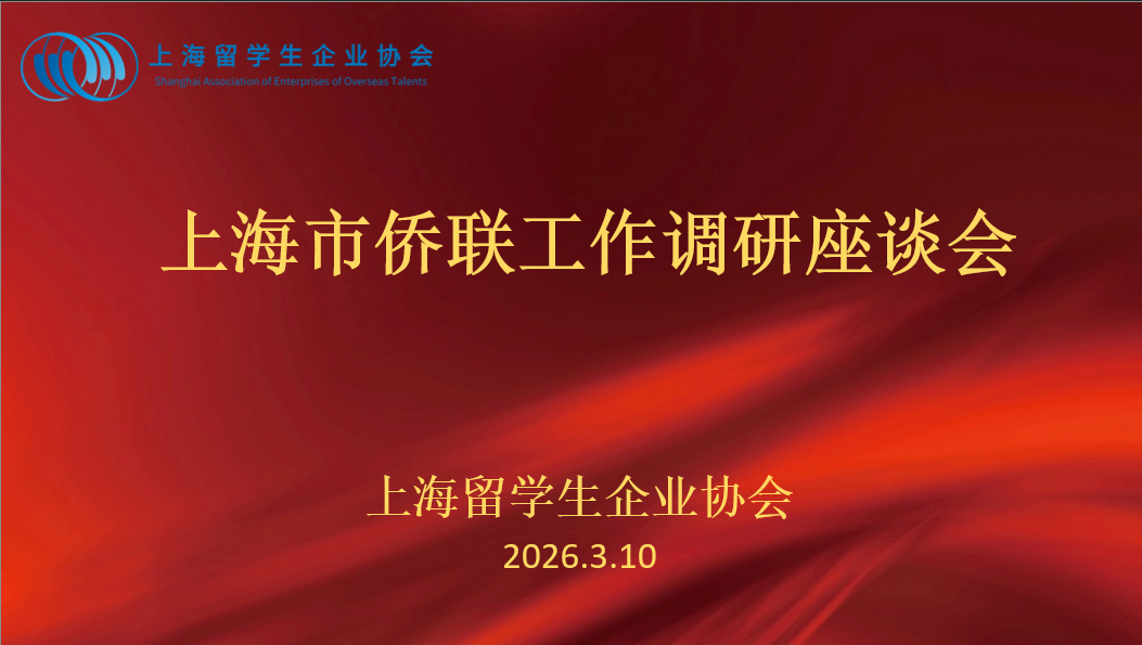3月10日上午,上海市侨联副主席姜颖一行莅临上海留学生企业协会开展走访调研,市侨联社会组织联合党支部书记戴礼浩、海外联络二部三级调研员朱政权陪同调研。上海留学生企业协会会长闻振翩,副会长王向导,理事秦力、吴圣冯、姚智云,科创板块负责人尤逢尧及秘书长李萍等参与调研座谈。