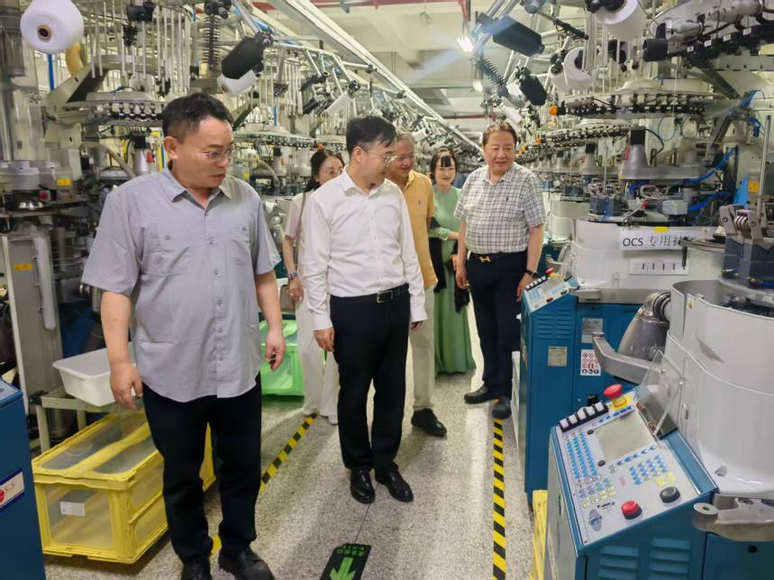 来到位于青浦区徐泾镇的上海中昊针织有限公司,致公党中央经济委员会委员、公司董事长高宝霖介绍了企业发展历程。据介绍,企业主营袜业加工、出口等业务,销售袜品总量居世界第一。企业创办20多年来,响应国家号召,积极投身脱贫攻坚战及促进乡村振兴。在江苏、安徽、湖北、云南四省设立了多个织造中心和帮扶车间,帮助2.3万人实现就业;应水利部邀请,在南水北调起始点湖北十堰,配合库区山地移民安置点建设,设立了目前国内最大的智能化袜厂,直接解决当地库区移民3000人劳动就业。
