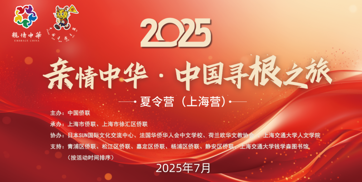 2025“亲情中华·中国寻根之旅夏令营”(上海营)由中国侨联主办,上海市侨联、徐汇区侨联承办,上海交通大学人文学院和日本、法国、荷兰相关华文教育机构协办,松江、青浦、嘉定、杨浦、静安区侨联及上海交通大学钱学森图书馆支持。