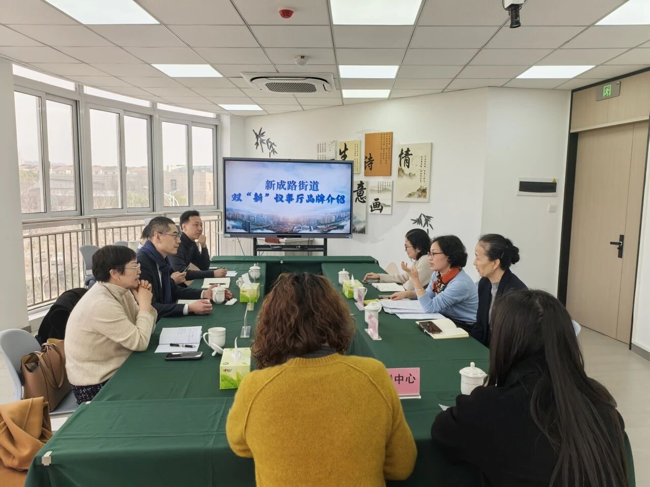在双“新”议事厅,市侨联一行听取了新成路街道党群服务中心关于阵地建设情况的介绍。近年来,区侨联依托侨务资源优势,持续深化“双‘新’议事厅”特色品牌,以新成路街道为试点,紧扣街道“新侨聚集、需求多元”的特点,通过搭建为侨服务平台,完善工作体系,充分激发新侨人士参与基层治理的积极性,推动一系列民生实事落地解决,形成了统战工作与基层治理深度融合的“新成模式”,为区域高质量发展注入强劲动力。