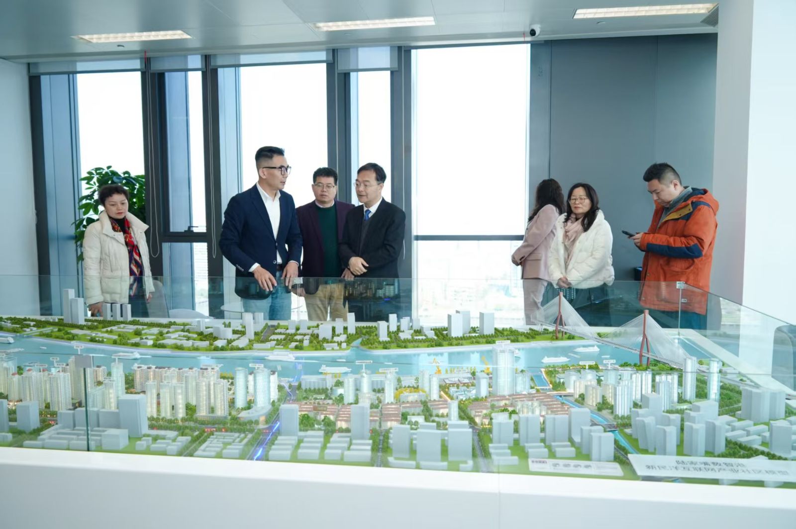 与会者首先实地考察了陆家嘴数智港,并听取情况介绍。陆家嘴数智港核心启动区坐落于浦东新区北滨江新民洋板块,滨江岸线长约2.8公里,面积约1平方公里,紧邻小陆家嘴核心区域,是陆家嘴金融城仍在建设的沿江稀缺板块。