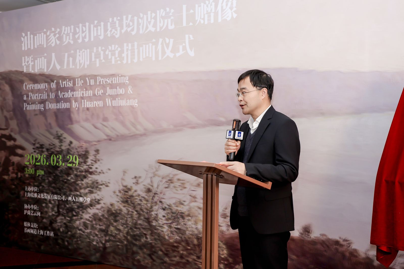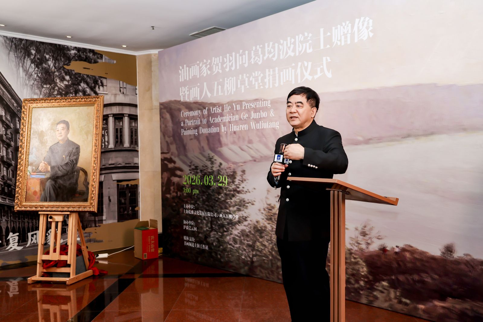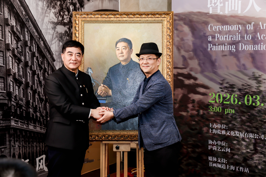 3月29日,知名油画家公益捐画仪式在徐汇区“画人五柳草堂”举行,知名油画家、中央美术学院教授贺羽向中科院院士、著名心血管病学专家葛均波赠送了由其历时一年精心创作的油画肖像,以表达对奋斗在科技创新以及治病救人一线专家的敬意。活动由上海市侨商联合会会员单位乾雅文化主办。
