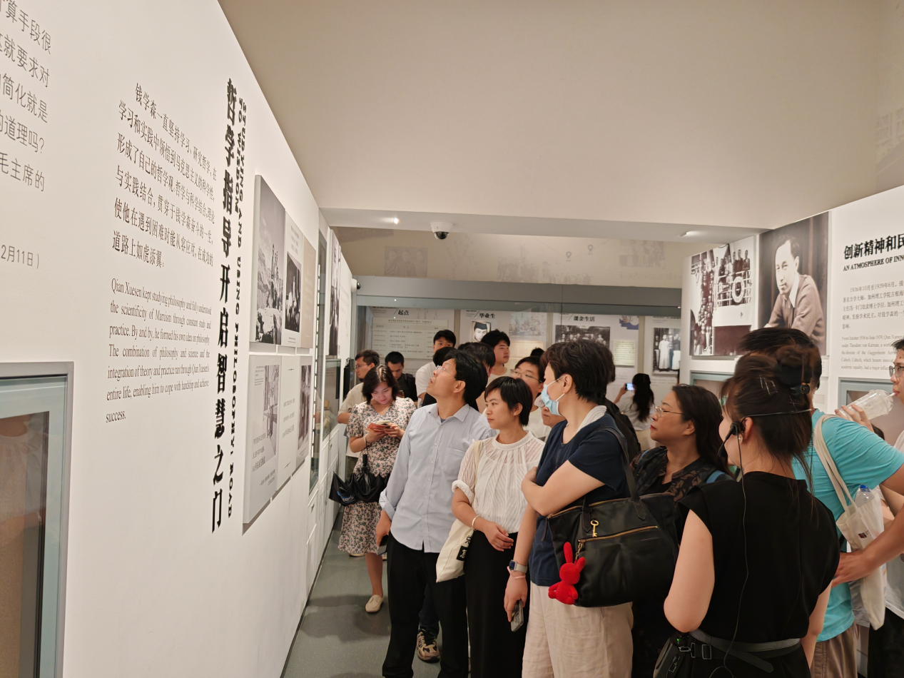 图书馆内,一件件珍贵的文物,无声讲述着钱学森先生矢志不渝的爱国情怀和为国奉献的光辉一生。他是我国近代力学事业的奠基人之一,他开创的工程控制论至今闪耀智慧光芒;他被誉为“航天之父”,毕生推动我国航天事业从无到有、由弱至强;他是“两弹一星”功勋奖章的获得者,其贡献如星辰般铭刻于共和国的丰碑之上。面对这些展品,侨联成员们驻足凝视,在导弹模型前感受其“五年归国路,十年两弹成”的坚韧执着,在手稿笔记中体会其严谨求实的科学精神。在碰撞交流中,大家由衷感叹,钱学森先生“科学无国界,但科学家有祖国”的信念,正是他克服万难、毅然归国,将毕生智慧奉献给这片土地的动力源泉。